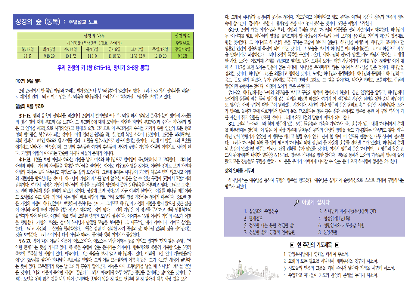 성경의 숲(창 3-8장) 2026.01.11.주일설교 요약
